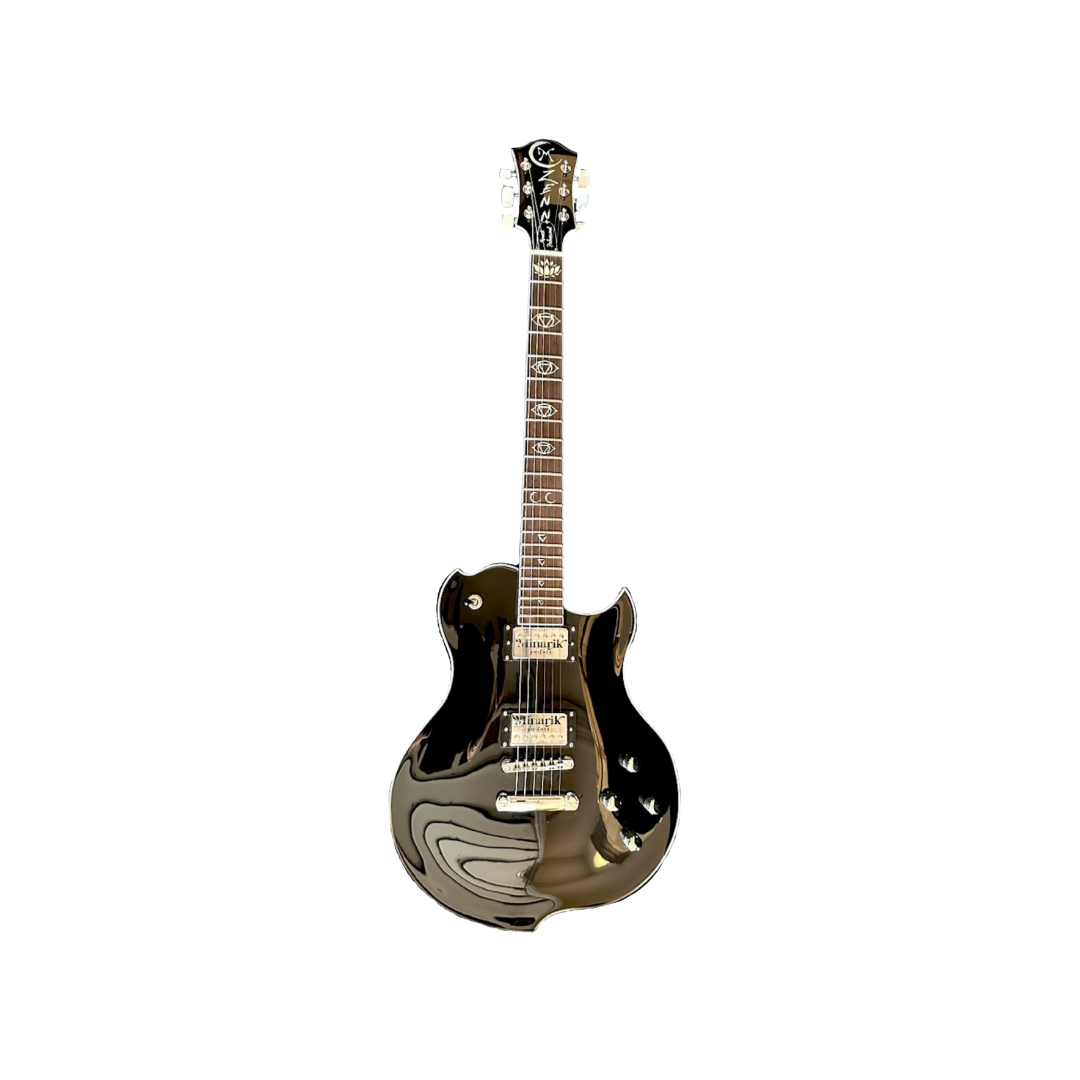 This is the most technically "perfect" single cut-away guitar on the market. The traditional single cut-away guitar is severely lacking in the left-side surface area which is used to grab and articulate low-end frequency response. By incorporating Minarik Guitars proprietary Tone Tail Engineering on the bottom of the body and adding an additional tail on the upper left bout, the frequency problems with the traditional single cut-away guitar have been "corrected.” The cut-away has been sharpened and enhanced to tie in with the two other "points" on the body, giving this guitar that signature Minarik design style.